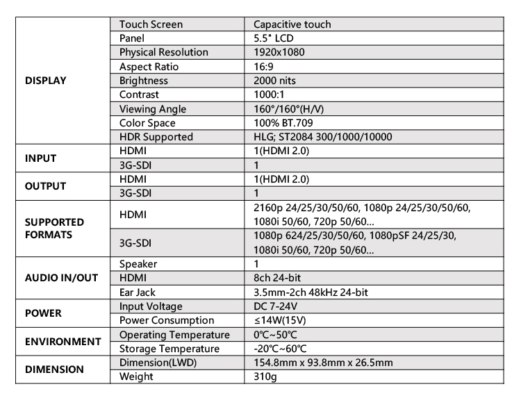 * 3G-SDI input & loop output, Supporting up to 1080p 60Hz