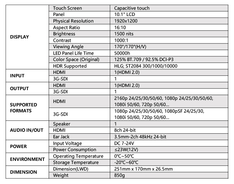 * Support HDR, 3D-LUT, Control camera by LANC cable