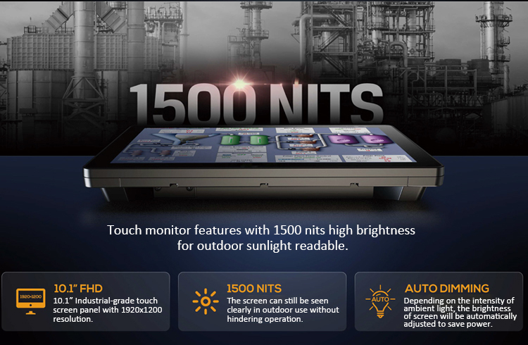 * 1500nits High Brightness for Outdoor Sunlight Readable