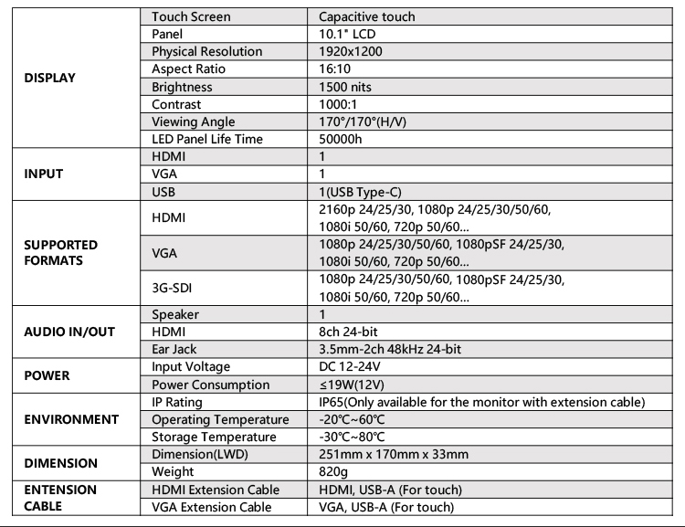 * 10.1", 1920x1200 Screen, 1000:1 Contrast