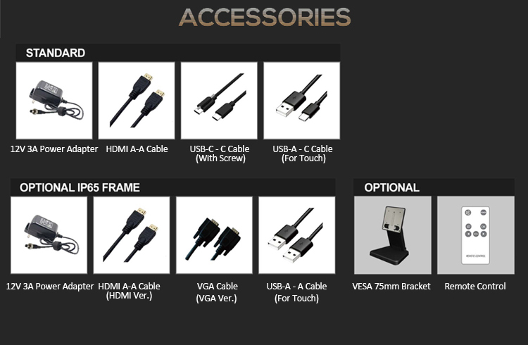 * Optional IP65 Frame With Two Options for HDMI and VGA ports