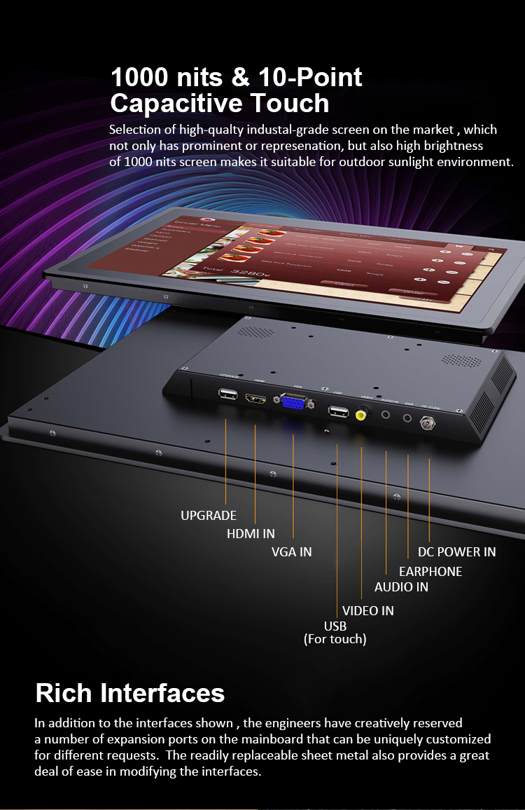 * HDMI, VGA, AV, USB for Touch