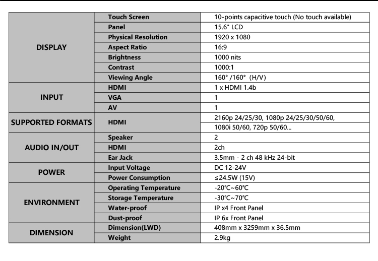 * 15.6 inch 1920x1080 panel with Capacitive touch