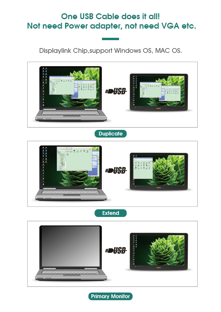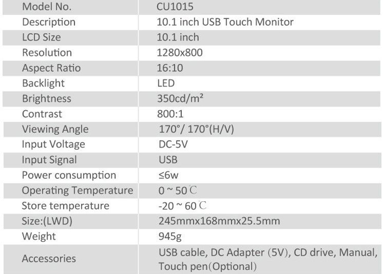 * USB input & output,Full Viewing Angle