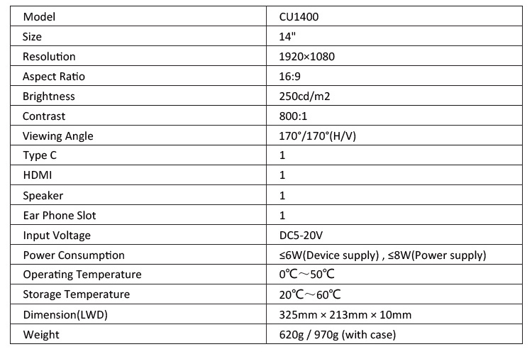 * I/O: Type-C/Mini HDMI/Earphone Jack