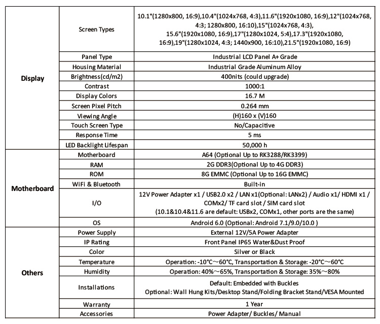 * OS: Android 6.0, Optional Android 7.1/9.0/10.0