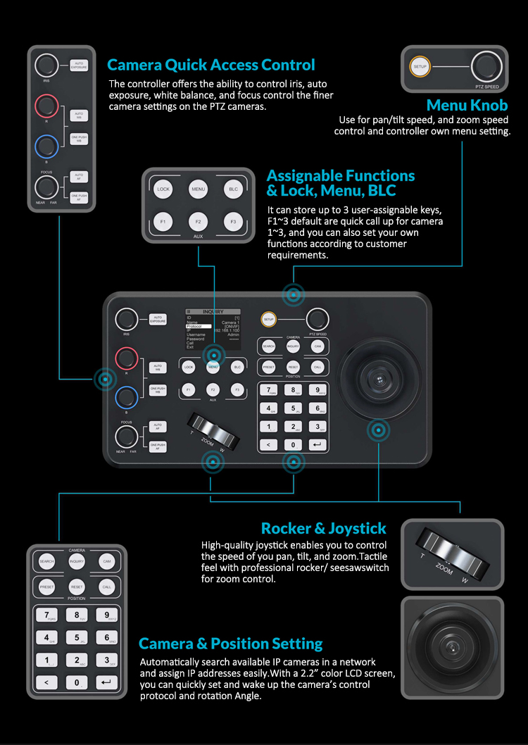 * Cross protocol mix control with IP/ RS 422/ RS 485/ RS 232