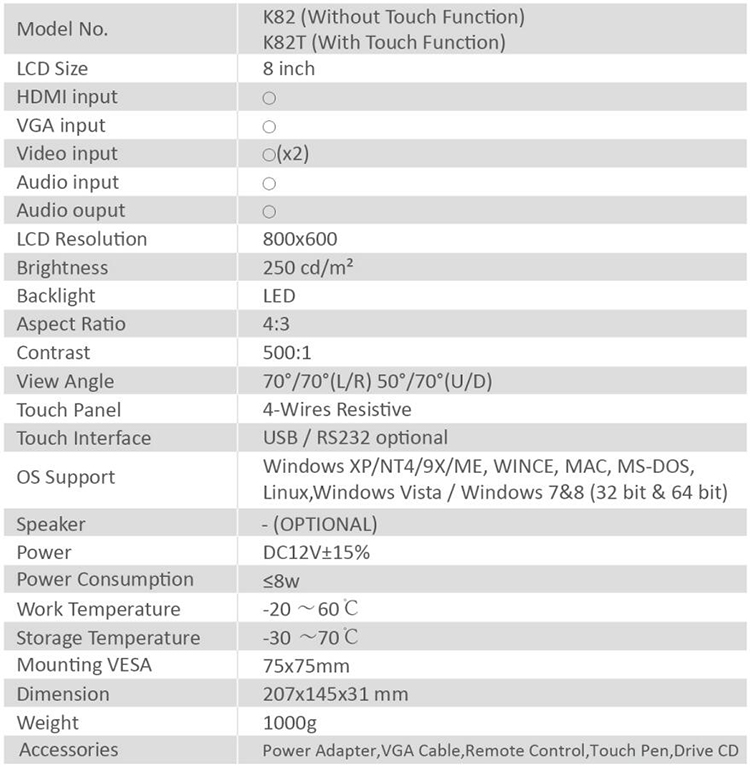 * 8 inch TFT LCD panel with resolution 800x600
