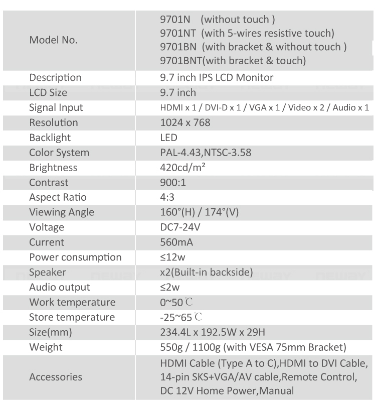 * 9.7 Inch IPS 1024x768 LCD Monitor