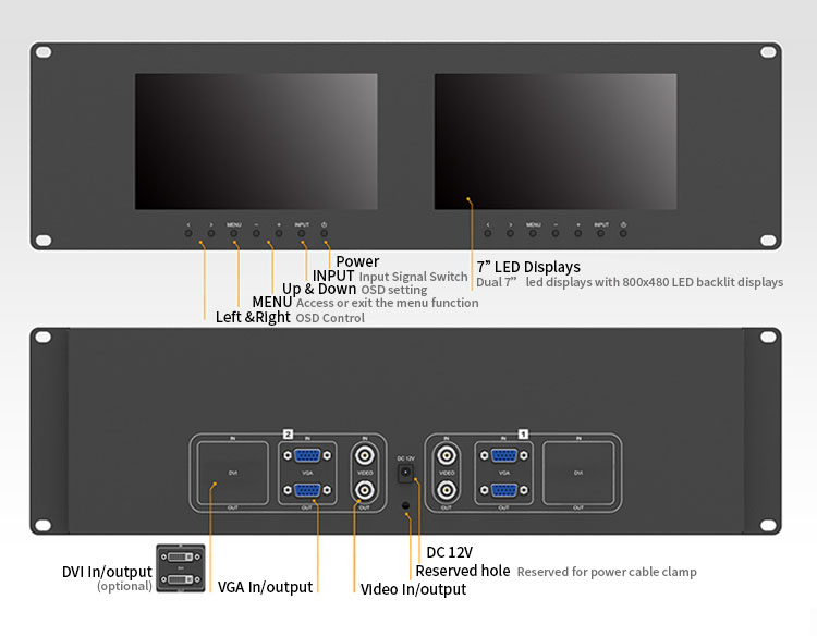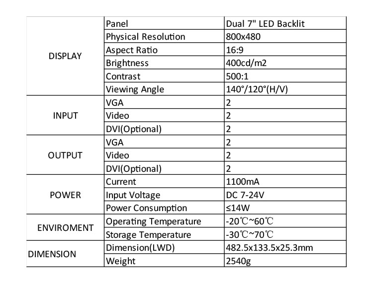 * Dual 7”, 800x480, 400cd/m2 brightness