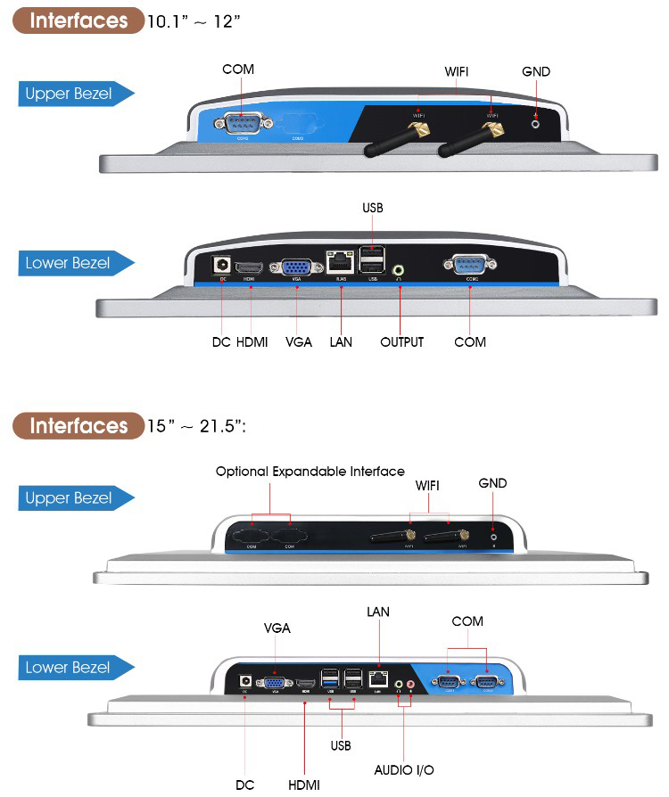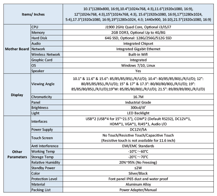 * 10.1" to 21.5” available, 4:3 or 16:9 Aspect Ratio Screen