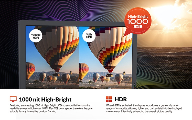 * IO: 4K HDMI/3G-SDI/VGA/Audio/Video/Earphone