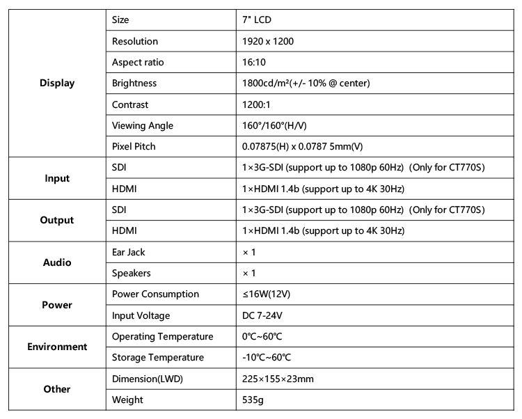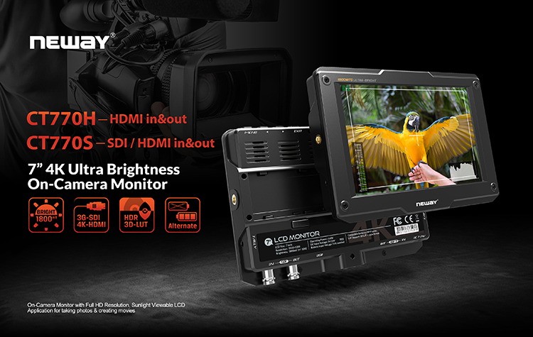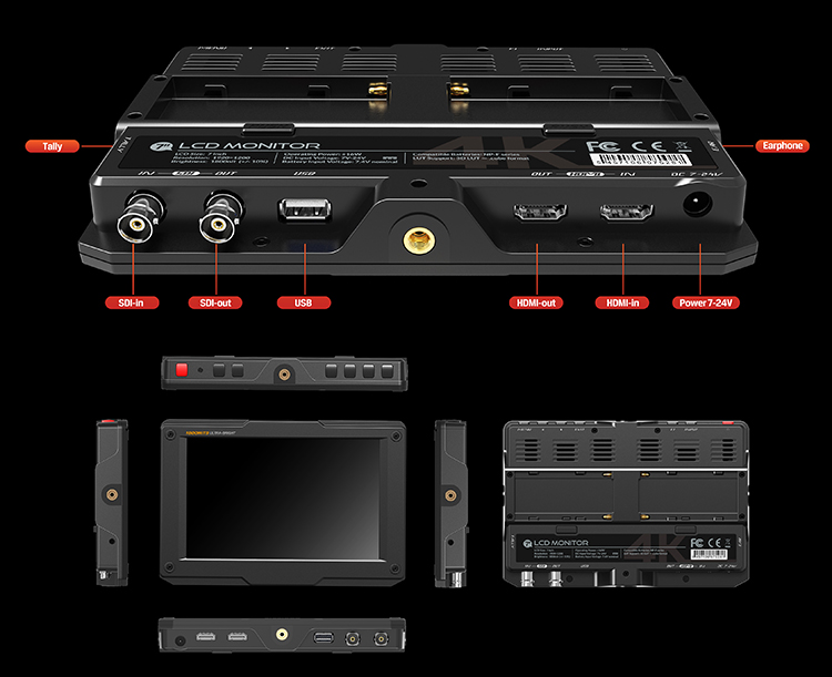 * 7" 4K Ultra Brightness On-Camera Monitor