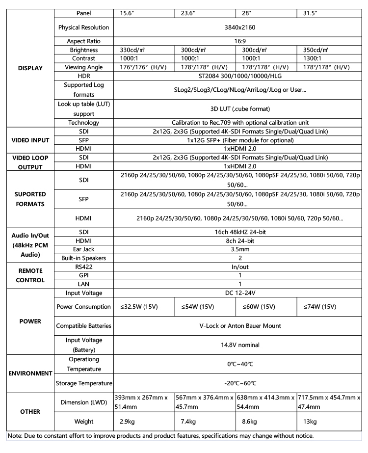 * IO: 12G-SDI, 3G-SDI, HDMI, LAN, RS422, GPI