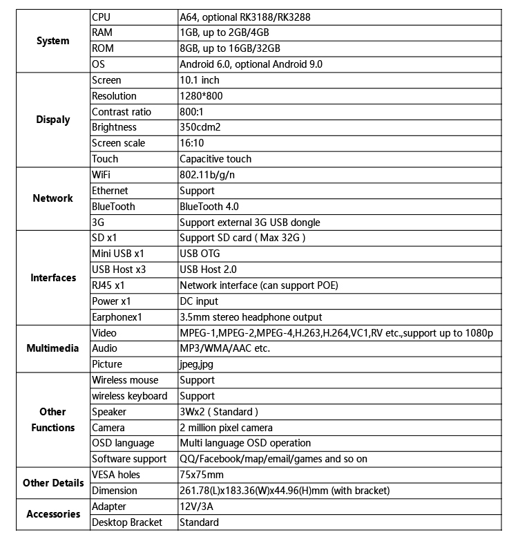 * 1280x800 resolution(10.1")