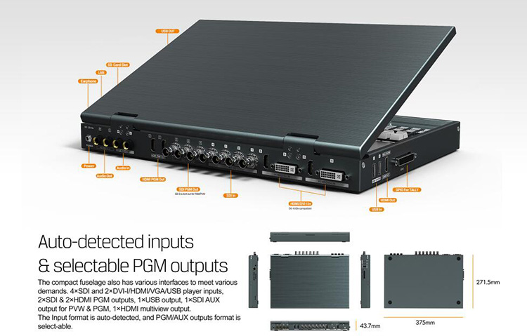 * 6 channel inputs: 4×SDI and 2×HDMI/ DVI-I/ VGA/ USB