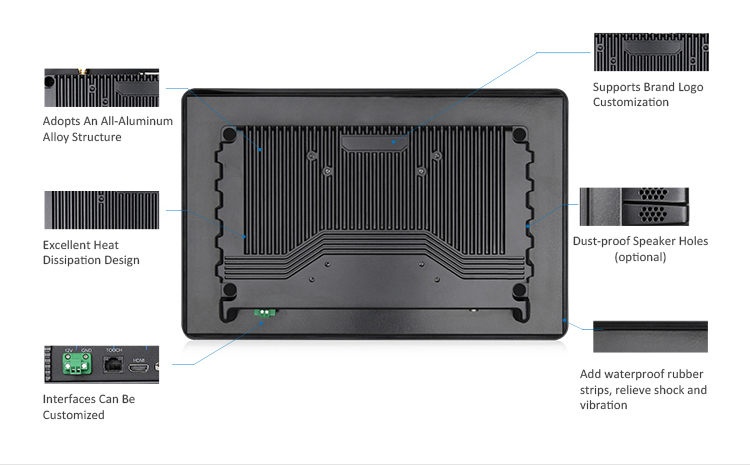 * HDMI, VGA, DVI, RJ45 act as USB for touch