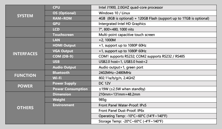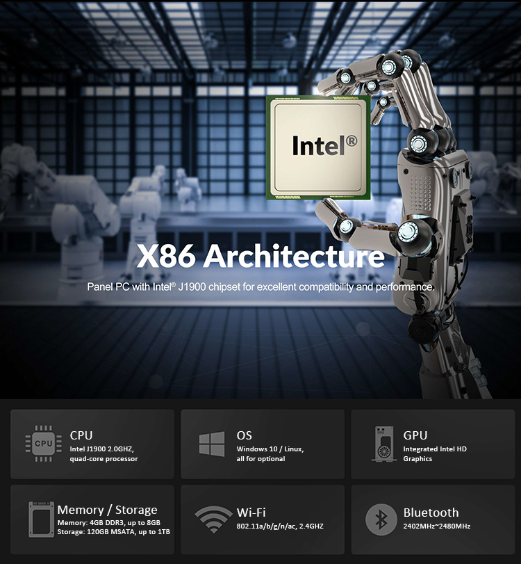 * Intel J1900, 2.0GHZ quad-core processor with Windows 10/Linux OS